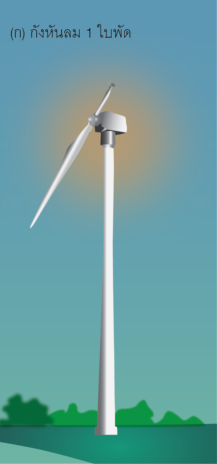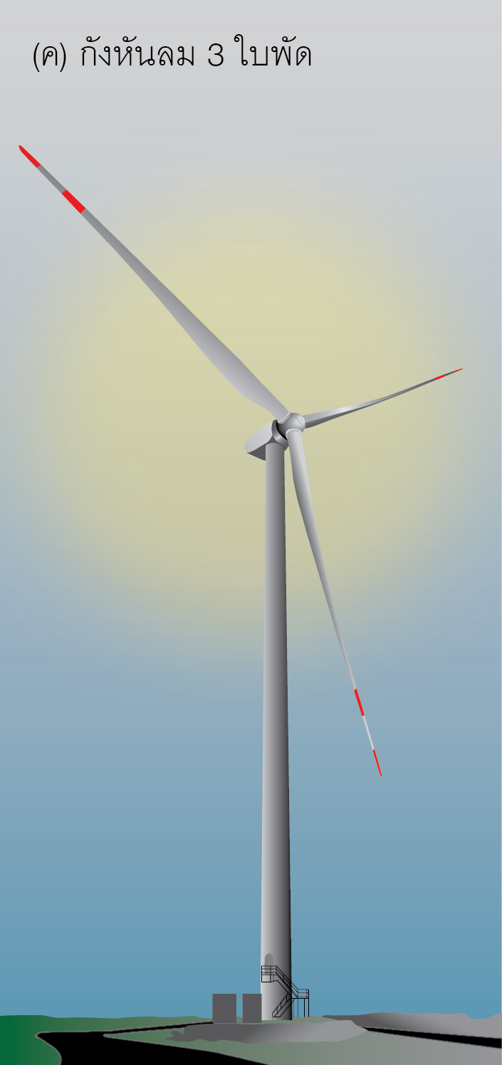 ภาพ 6.5: กังหันลมเพื่อผลิตไฟฟ้า (ก) 1 ใบพัด (ข) 2 ใบพัด และ (ค) 3 ใบพัด