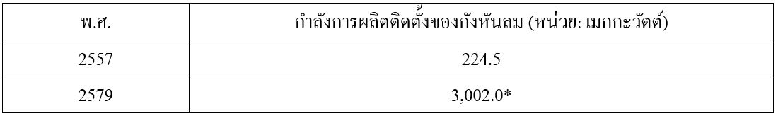 ตาราง 6.3: แผนพัฒนาพลังงานลม ในปี พ.ศ. 2557 ถึง พ.ศ. 2579
