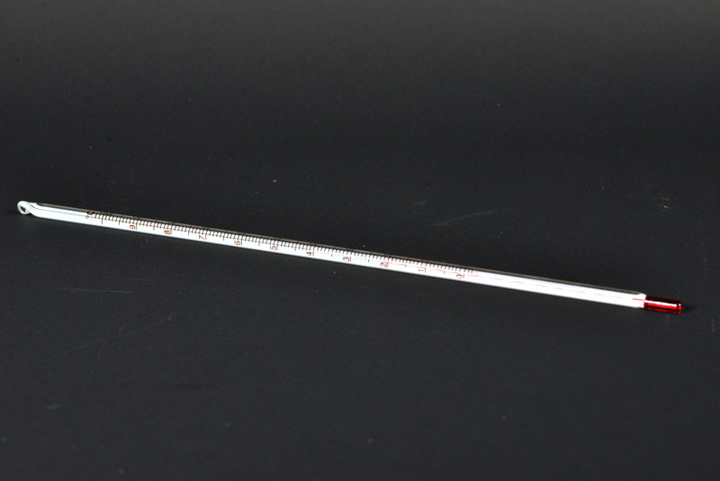 เครื่องมือสำหรับวัดระดับความร้อน เมื่อได้รับความร้อนจะขยายตัว และหดตัวเมื่อคายความร้อน ของเหลวที่ใช้บรรจุในกระเปาะแก้วของเทอร์มอมิเตอร์ คือ ปรอทหรือแอลกอฮอล์
