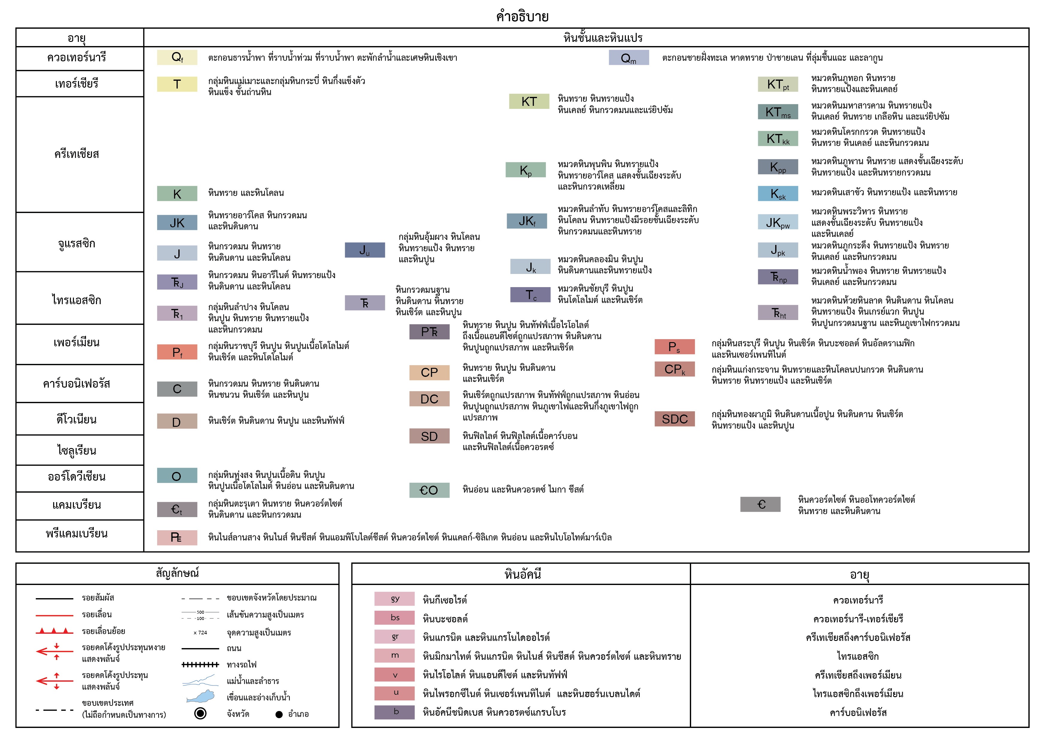 แผนที่ธรณีวิทยาประเทศไทย, สัญลักษณ์และคำอธิบาย, แผนที่ธรณีวิทยา,geologic map of Thailand ,geologic map
