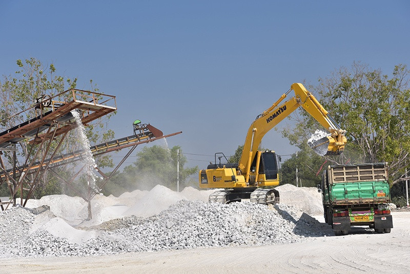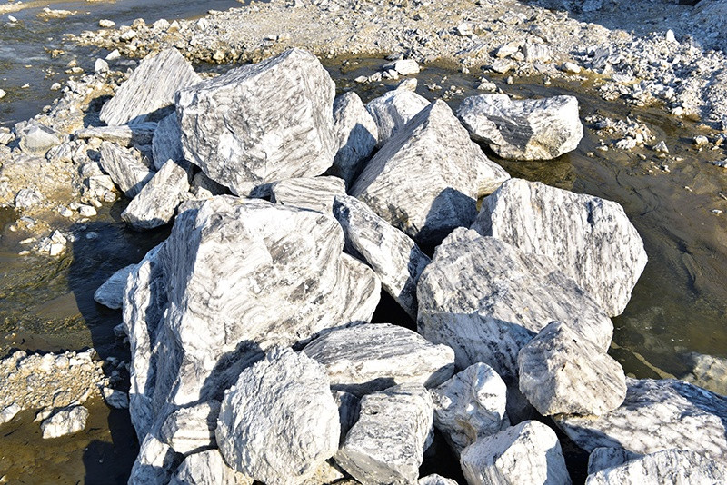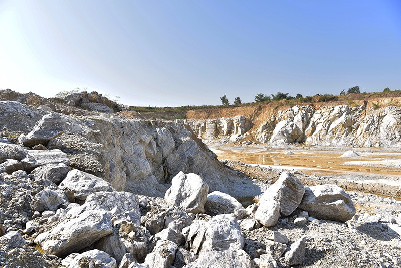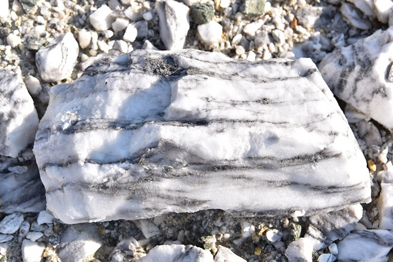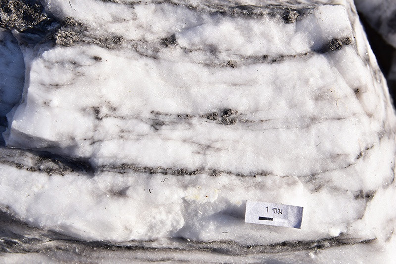 หินยิปซัม ที่เหมืองบริษัท เคไมนิ่ง จำกัด อ.ดงเจริญ จ.พิจิตร มีทั้งก้อนเล็กก้อนใหญ่ ลักษณะเนื้อหินเป็นเนื้อละเอียด มีสีดำและสีขาวขุ่น ผลึกเล็กๆในเนื้อหินคือ แร่ยิปซัม