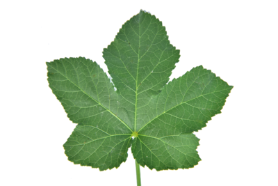 ใบของต้นกระเจี๊ยบเขียวเป็นใบเดี่ยว ลักษณะของใบมีขอบใบแฉกแบบนิ้วมือ สีเขียว