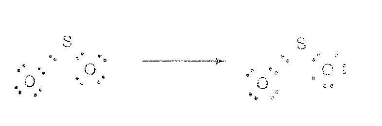 การเขียนโครงสร้างตามแบบ 1 และ แบบ 2 จึงไม่สอดคล้องกับผลจากการทอลอง ถ้าจะเขียนตามแบบ 3 ก็ไม่ได้อีกเพราะเป็นแบบที่มีอิเล็กตรอนเดี่ยว โมเลกุลที่มีอิเล็กตรอนเดี่ยวมีคุณสมบัติแม่เหล็กดูดได้ (paramagnetic) แต่ผลจากการทดลองพบว่าสารนี้แม่เหล็กดูดไม่ได้ ดังนั้น โมเลกุลของ SO2น่าจะมีโครงสร้างตามแบบ 1 และ แบบ 2 ผสมกัน คือ พันธะระหว่าง S จะเป็นพันธะเดี่ยวรวมกับพันธะคู่ หรือเป็นพันธะที่มีสมบัติเป็นได้ทั้งพันธะเดี่ยวและพันธะคู่ ดังนี้