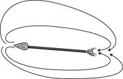 อริสโตเติล ตอบคำถามด้วยทฤษฎีของเขาว่า การที่ลูกธนูพุ่งออกไปได้ไกลนั้น เป็นเพราะขณะที่ธนูกำลังเคลื่อนแหวกอากาศ อากาศที่อยู่ด้านหน้าลูกธนูได้ไหลมาออกแรงผลักดันก้นธนูให้เคลื่อนที่ต่อไปข้างหน้า ดังรูปที่ 2