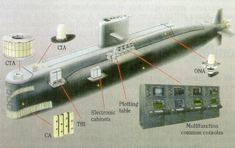 3. INTERCEPT SONAR โซนาร์ชุดนี้เป็นโซนาร์แบบ PASSIE เช่นเดียวกันแต่ใช้สำหรับการดักรับสัญญาณเสียงความถี่คลื่นโซนาร์ของเรือฝ่ายตรงข้ามซึ่งเปรียบเสมือนเครื่อง ESM ใต้น้ำนั่นเอง ดังนั้นจึงสามารถนำเสียงที่ดักรับได้นั้นมาวิเคราะห์ โดยวิธีเดียวกันกับโซนาร์แบบ PASSIE RANGING SONAR เพื่อพิสูจน์ทราบว่าเรือที่ส่งคลื่นโซนาร์นั้นเป็นเรือประเภทใด นอกจากนี้ยังมีสัญญาณเตือนภัยอัตโนมัติเมื่อสามารถดักรับสัญญาณของ ACTIE ACOUSTIC HOMING HEAD (สัญญาณเสียงอันเนื่องมาจากการค้นหาของหัวตอร์ปิโด) ของตอร์ปิโดข้าศึกที่ยิงมายังเรือดำน้ำได้อีกด้วย