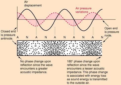 ถ้าเราส่งคลื่นเสียงจากลำโพงเข้าไปทางปากหลอด คลื่นเสียงจะสะท้อนที่ปากหลอดทั้งสองกลับไปกลับมาแล้วเกิดการแทรกสอดกัน ทำให้เกิดคลื่นนิ่ง เมื่อปรับความถี่ของคลื่นเสียงให้มีค่าพอเหมาะจะเกิดคลื่นนิ่งที่มีแอมพลิจูดเพิ่มมากขึ้น และถ้าที่ปากหลอด เป็นตำแหน่งของปฏิบัพของคลื่นพอดี เราจะได้ยินเสียงออกมาจากหลอดดังที่สุด แสดงว่าเกิดการสั่นพ้องของเสียง โดยความถี่ของคลื่นนิ่งที่ทำให้เกิดการสั่นพ้องของเสียงในหลอด มีได้หลายค่าดังนี้