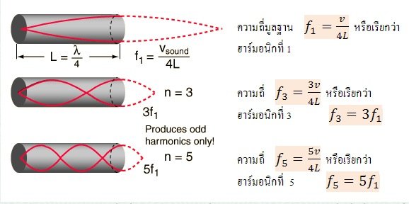 ภาพแสดง การเกิดคลื่นนิ่งในท่อปลายปิด ยาว L