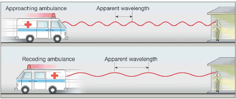 หากเราลองสังเกตเสียงหวูดของรถพยาบาลจะพบว่า ขณะที่รถพยาบาลกำลังวิ่งเข้าหาเราจะทำให้เรารู้สึกได้ยินเสียงแหลมกว่าปกติ แต่เมื่อรถวิ่งผ่านเราไปจะทำให้เรารู้สึกว่าได้ยินเสียงทุ้มต่ำกว่าตอนแรก การที่เราได้ยินเสียงที่มีระดับเสียงเปลี่ยนไปเช่นนี้ เป็นตัวอย่างของการเกิดปรากฏการณ์ดอปเพลอร์ของเสียงนั่นเอง