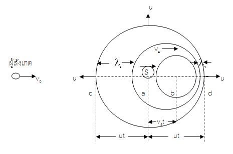 λ1 คือ ความยาวคลื่นเสียงด้านหน้าแหล่งกำเนิดเสียง