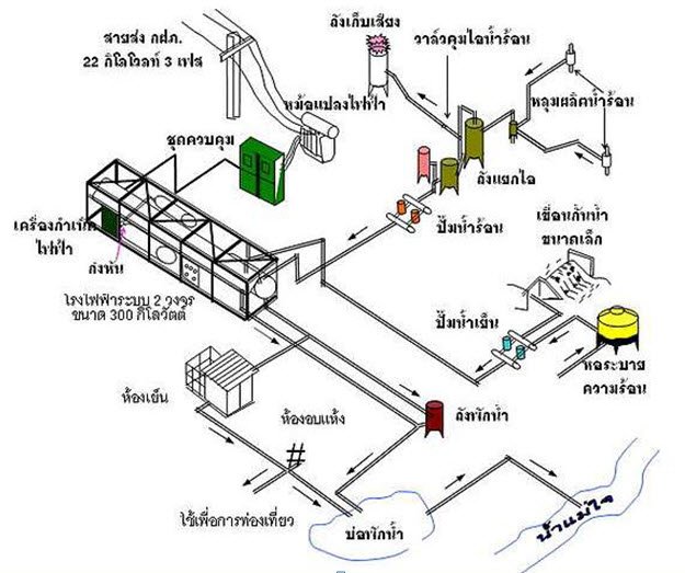 ห้องอบแห้ง (Drying room) ซึ่งเป็นผลพลอยได้จากน้ำร้อนที่ปล่อยจากโรงไฟฟ้าพลังงานน้ำพุร้อนฝาง จ. เชียงใหม่ (ณ. อุณหภูมิ 77 °ซ) จะไหลเวียนเป่าเข้าไปในห้องอบแห้ง ซึ่งทำเป็นชั้นๆ สำหรับวางผลิตผลการเกษตร