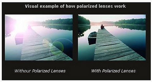 2.เลนส์โพลาไรซ์(POLARIZED LENS)มีคุณสมบัติสามารถตัดแสงสะท้อนจากผิวน้ำหรือถนนได้ ทำให้สบายตามากขึ้นเมื่อใช้ขณะเล่นกีฬาทางน้ำหรือขับรถ แต่ไม่มีคุณสมบัติในการกรองรังสีUVอย่างไรก็ตามปัจจุบันมีเลนส์โพลาไรซ์หลายยี่ห้อที่ฉาบสารเคมีเพื่อดูดซับรังสีUVไว้ด้วย ดังนั้นควรตรวจสอบให้แน่ชัดว่า เลนส์ที่เลือกซื้อนั้นมีคุณสมบัติดังกล่าวด้วยหรือไม่