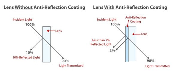 นอกจากวัสดุอย่างดีที่ให้สมบัติทางแสงและการมองเห็นที่ได้มาตรฐาน สำหรับแว่นกันแดดแล้ว เทคนิคการเคลือบเลนส์ยังช่วยให้แว่นกันแดดเป็นอุปกรณ์ป้องกันแสงแดดที่สมบูรณ์ขึ้น เช่น การย้อมสีเลนส์ หรือเรียกว่า “tinting” ทำให้เลนส์มีสีเข้มขึ้น โดยทั่วไปนิยมย้อมสีให้เข้มไม่เกิน 60% แต่หากแว่นกันแดดสำหรับกลางแจ้ง ควรให้สีเข้มถึง 70-90% แว่นกันแดดอาจใช้เลนส์ที่เข้มได้ถึง 97% ซึ่งหมายถึงสามารถป้องกันแสงแดดที่เข้าสู่ตาเราได้มากถึง 97 % นั่นเอง