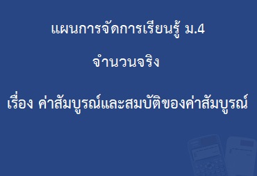 แผนการจัดการเรียนรู้ จำนวนจริง: หน่วยการเรียนรู้ ค่าสัมบูรณ์ เรื่อง ค่าสัมบูรณ์และสมบัติของค่าสัมบูรณ์ ระดับชั้นมัธยมศึกษาปีที่ 4 ผลิตขึ้นเพื่อให้ครูในโรงเรียนทั่วประเทศได้ใช้ประกอบการสอนวิชาคณิตศาสตร์โดยใช้เครื่องคำนวณวิทยาศาสตร์ ให้นักเรียนเข้าใจจำนวนจริงและใช้สมบัติของจำนวนจริงในการแก้ปัญหา รวมถึงมีเจตคติที่ดีต่อคณิตศาสตร์มากขึ้น และนักเรียนสามารถนำความรู้ไปต่อยอดในระดับมหาวิทยาลัยได้ต่อไป