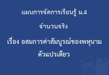แผนการจัดการเรียนรู้ จำนวนจริง : หน่วยการเรียนรู้ อสมการ เรื่อง อสมการค่าสัมบูรณ์พหุนามตัวแปรเดียว ระดับชั้นมัธยมศึกษาปีที่ 4 ผลิตขึ้นเพื่อให้ครูในโรงเรียนทั่วประเทศได้ใช้ประกอบการสอนวิชาคณิตศาสตร์โดยใช้เครื่องคำนวณวิทยาศาสตร์ ให้นักเรียนแก้อสมการค่าสัมบูรณ์ของพหุนามตัวแปรเดียว และนำไปใช้ในการแก้ปัญหา รวมถึงมีเจตคติที่ดีต่อคณิตศาสตร์มากขึ้น และนักเรียนสามารถนำความรู้ไปต่อยอดในระดับมหาวิทยาลัยได้ต่อไป