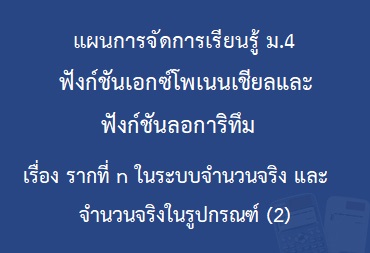 ฟังก์ชันเอกซ์โพเนนเชียลและฟังก์ชันลอการิทึม : เรื่องรากที่ n ในระบบจำนวนจริงและจำนวนจริงในรูปกรณฑ์ (2)