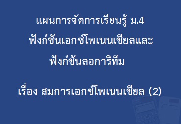 ฟังก์ชันเอกซ์โพเนนเชียลและฟังก์ชันลอการิทึม : เรื่อง สมการเอกซ์โพเนนเชียล (2)