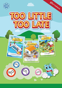 ชุดเกม Too Little Too Late เป็นสื่อประกอบกิจกรรมที่ 1.2 เราจะลดปริมาณแก๊สเรือนกระจกได้อย่างไร ในหนังสือเรียนรายวิชาพื้นฐานวิทยาศาสตร์และเทคโนโลยี ชั้นประถมศึกษาปีที่ 6 เล่ม 2 เป็นเกมที่อธิบายเกี่ยวกับกิจกรรมที่เพิ่มปริมาณแก๊สเรือนกระจกและแนวทางการปฏิบัติตนเพื่อลดกิจกรรมที่ก่อให้เกิดแก๊สเรือนกระจก