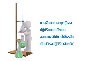 งานวิจัยนี้ได้ศึกษาประสิทธิภาพของกรดอะมิโนโพรลีน ในการเร่งปฏิกิริยาแมนนิชแบบอสมมาตร ระหวาง 2-เพนทาโนน, พาราแอนนิซิดีน และฟอมัลดีไฮด์ โดยใชทฤษฎี Density Functional Theory (DFT) B3LYP/6-31++G(d,p) จากการศึกษาโครงสร้างของตัวเร่ง สารตั้งต้น และสารมัธยันตร์ในปฏิกิริยาขั้นที่เกี่ยวข้องกับการเกิดสเตอริโอเคมี พบว่าเกิดผลิตภัณฑ์ได้ 3 ลักษณะ โดยมีเพียงลักษณะเดียวที่เป็นผลิตภัณฑ์หลักของปฏิกิริยา จากผลการคำนวณแสดงให้เห็นว่าตัวเร่งมีบทบาทในการสร้างพันธะไฮโดรเจนกับสารตั้งต้น ทำให้ได้ผลิตภัณฑ์ที่มีความจำเพาะของอิแนนทิโอเมอร์สูง